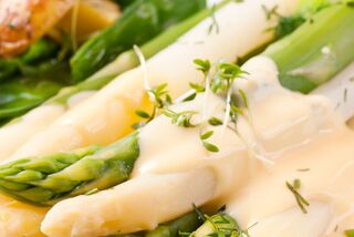 Gerade Anfang März funktionieren Gerichte, die Spargel klar zeigen, aber nicht zwingend riesige Mengen pro Portion brauchen. Vorspeisen sind dafür ideal: sauber gegarter weißer Spargel, dazu eine Ei‑Komponente (wachsweich, pochiert oder als Creme) und ein leichtes Finish. Klassiker wie Hollandaise funktionieren weiterhin – ihr könnt sie aber bewusst so führen, dass der Teller nicht zu schwer wirkt.